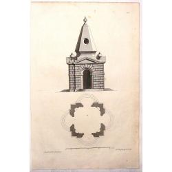 Fine architectural copper engraving of front & back of a domed building. It was engraved by H. Hulsbergh.James Gibbs (1682 – 1754) was one of Britain's most influen...