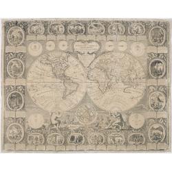 Elaborately engraved double hemisphere map, showing California as an island. Taken from the rare Atlas methodicus explorandis juvenum profectibus in studio geographico ad...