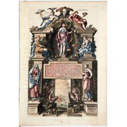 Fine illustrated titlepage from "Urbium Precipuarum Totius Mundi Urbium", Volume III of "Civitates Orbis Terrarum" by Georg Braun and Frans Hogenberg....