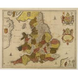 Janssonius' map of England and Wales was one of the new maps prepared by him in 1636. His map closely copies the similar map issued two years earlier by Willem Blaeu.. Th...